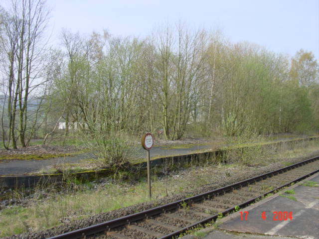 Heute wächst an der gleichen Stelle ein ungepflegter Urwald. Das Hausbahnsteiggleis ist ebenfalls bereits entfernt worden.
